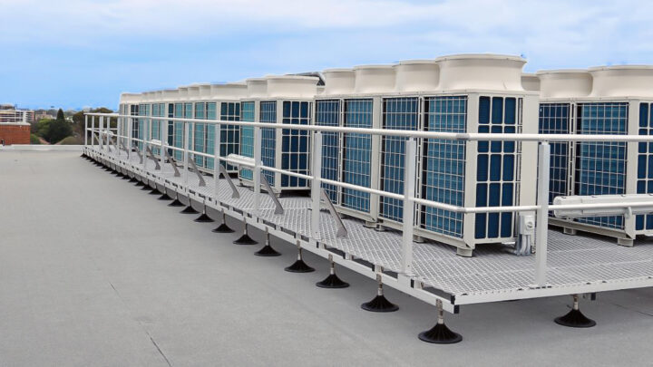Our Series 2 mounting solution is a pre-engineered system for rooftop plant installation, designed for flat roofs and multi-fall shallow gradients. The design features individually height adjustable bases, making it an ideal solution for areas with inconsistent slopes. The system is surface mounted, meaning it does not penetrate the roof and therefore preserves the integrity of the waterproofing and roof structure. Its intelligently engineered load-sharing design distributes equipment weight evenly across the roof, eliminating concentrated point loadings and reducing structural stress. This ensures a safe, reliable, and efficient installation method suitable for a wide range of rooftop plant applications while delivering consistent performance and long-term durability.