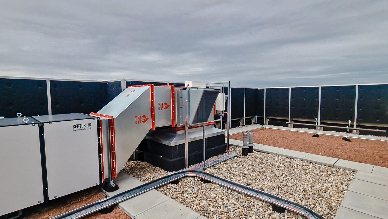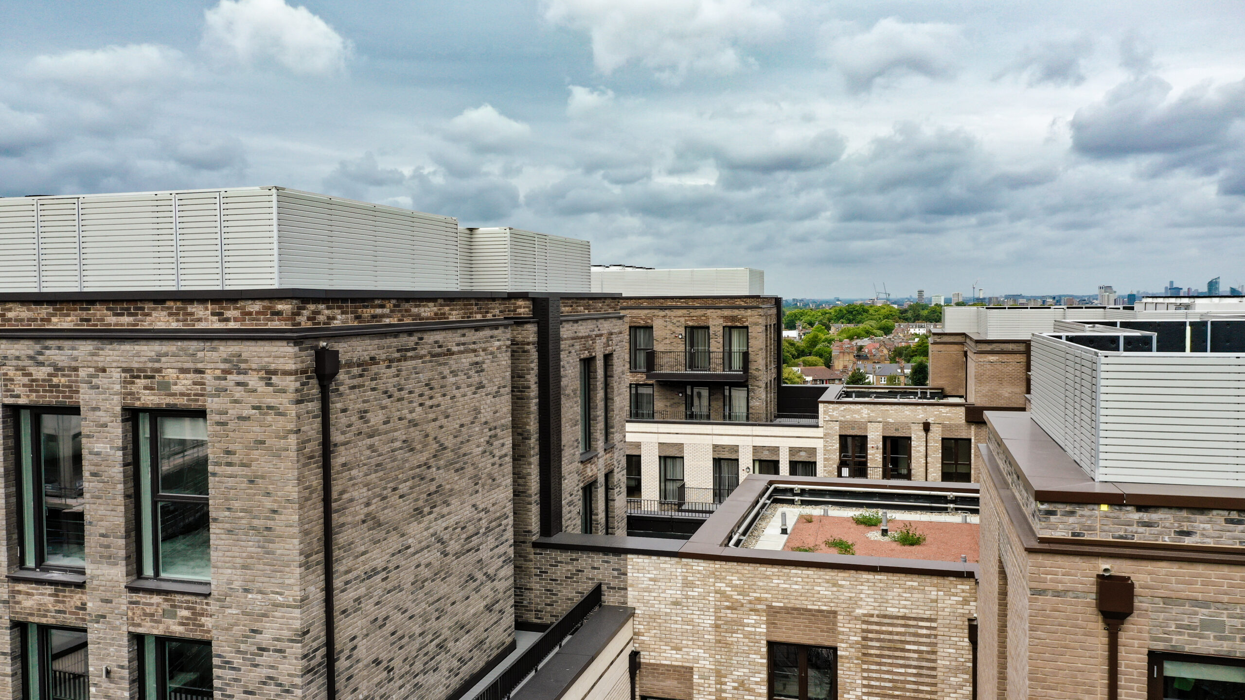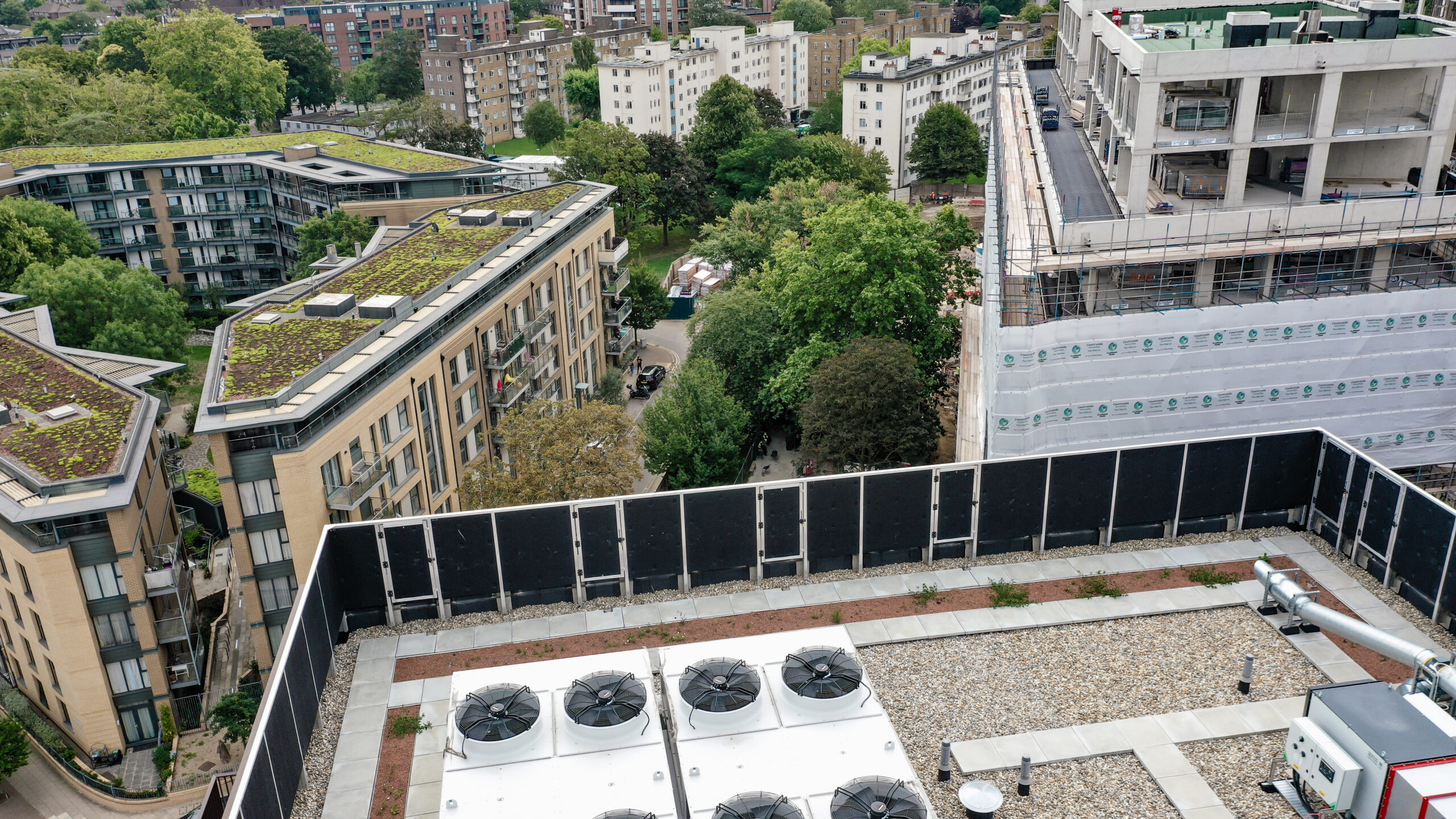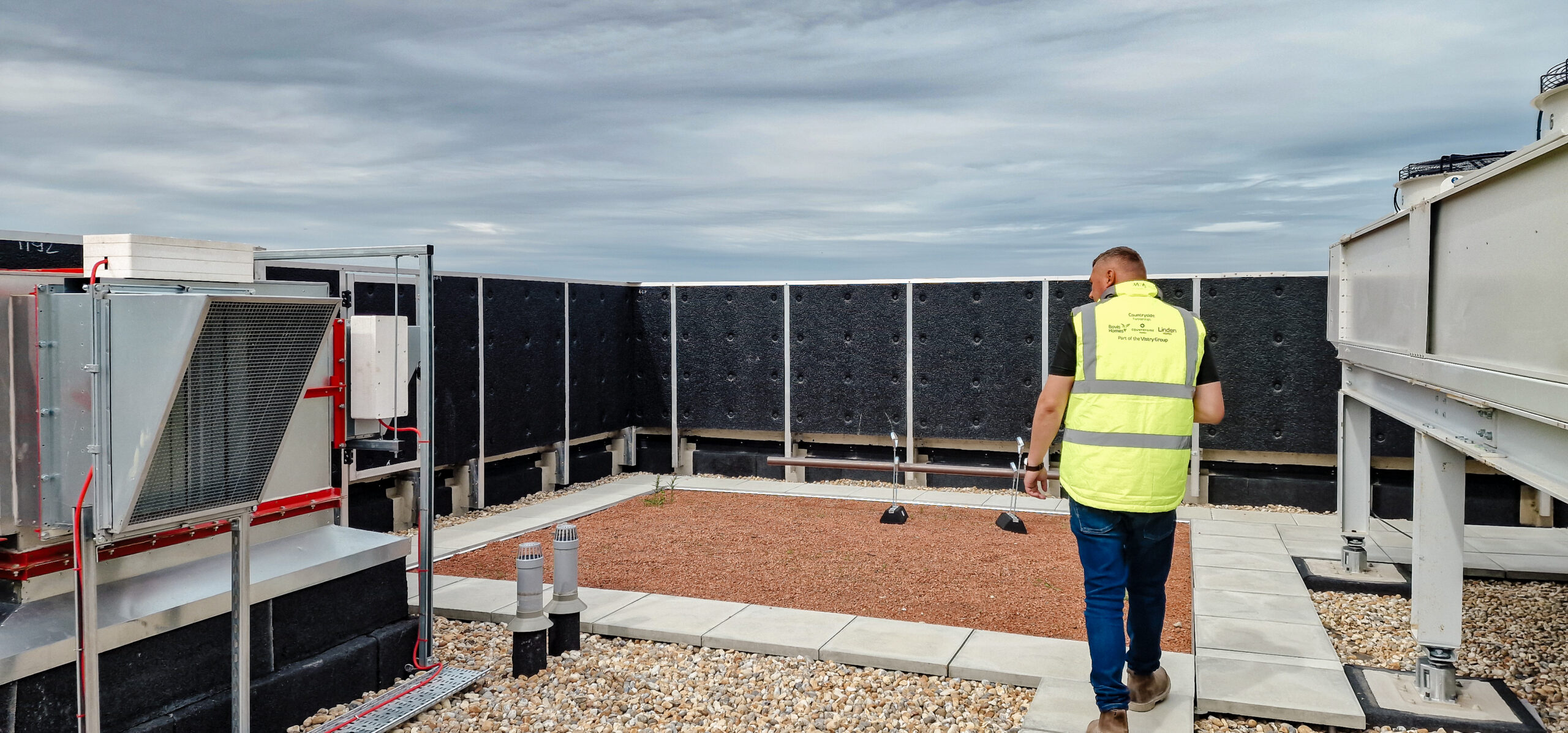 inside of the parapet using our Parascreen system. The design process ensured both visual harmony and effective acoustic performance, screening rooftop chiller units from view and noise.