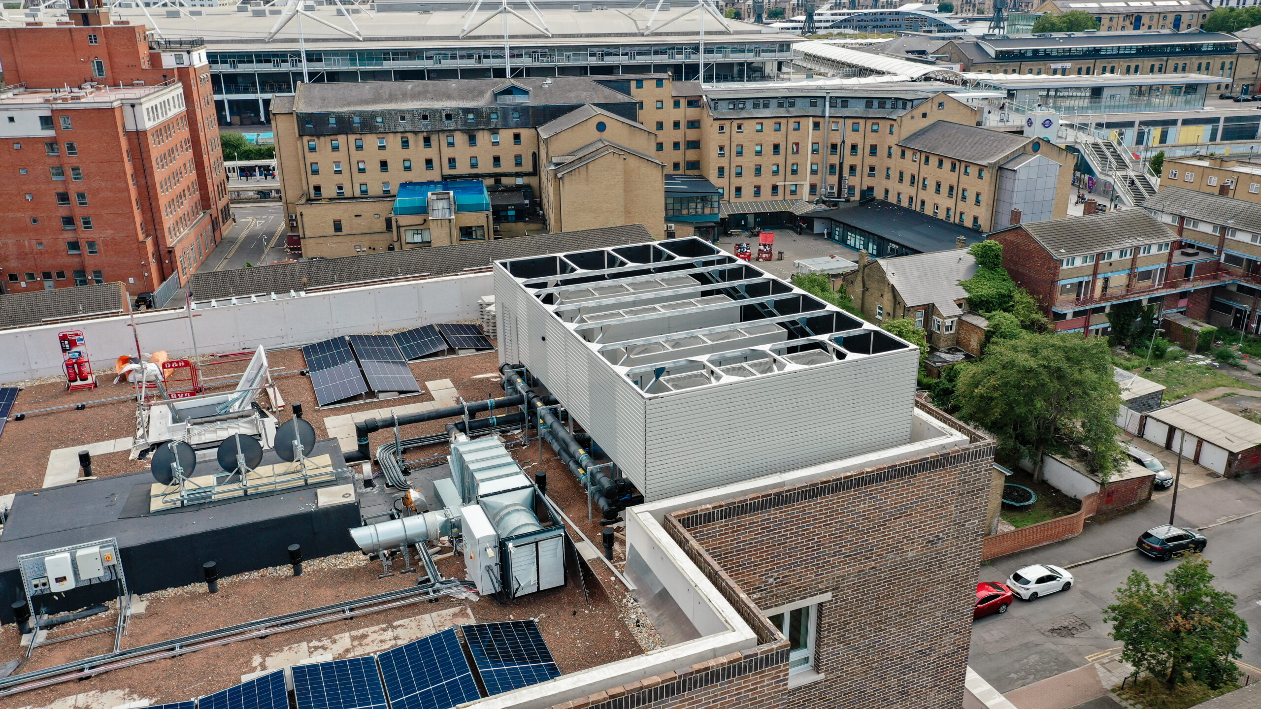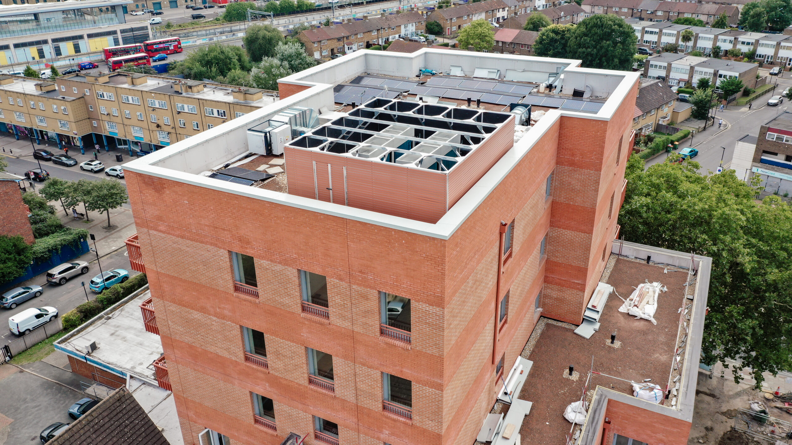 The non-penetrating design allowed the system to be installed directly on top of the finished roof build-up without compromising the waterproofing layer. Its modular format, prefabricated in our Leeds factory and delivered flat-packed to site, enabled rapid assembly with minimal disruption to the rooftop environment.