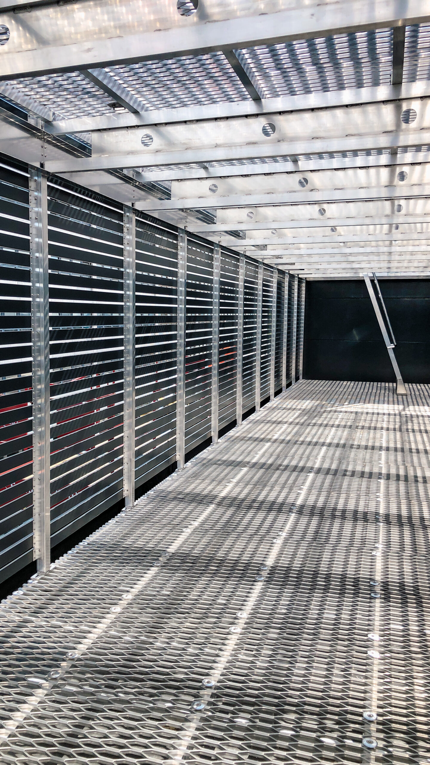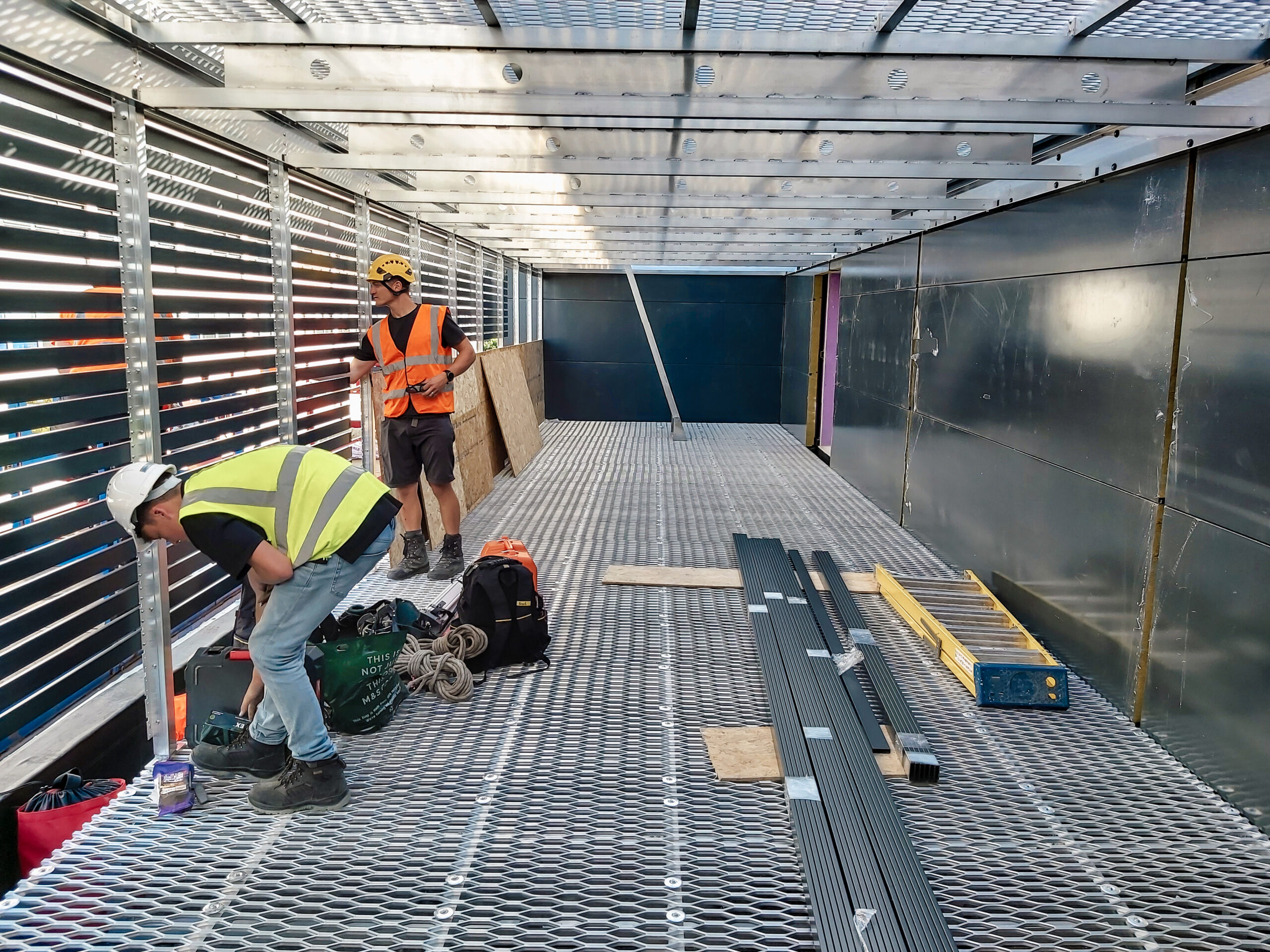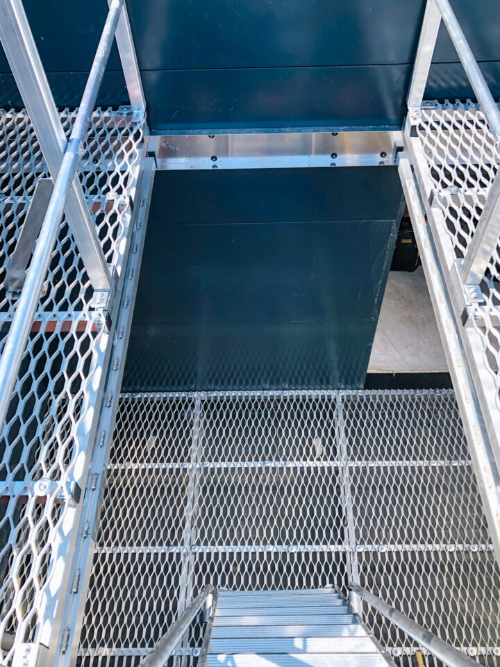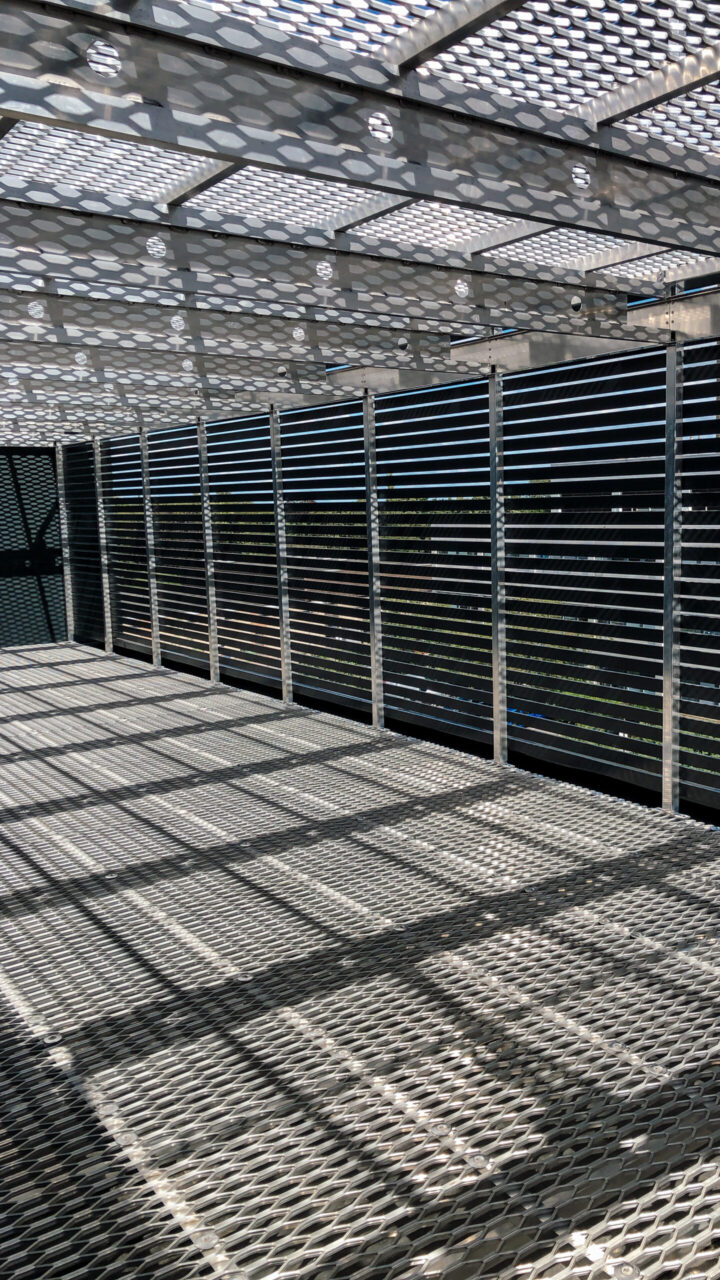 This solution maximized the use of limited space by incorporating a mezzanine level accessed via a hand railed step ladder. Our I-Bearer beam was utilized to provide a clear-spanning structural element, ensuring both strength and efficiency. The standard screens were continuous on the outside making a very tidy finish and screening off the equipment on both levels.