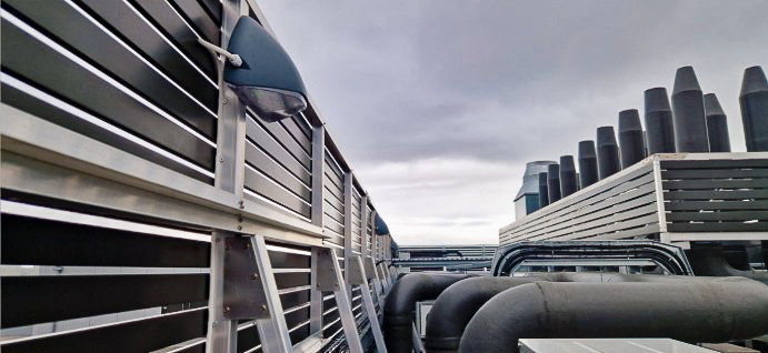 This simple yet effective design, developed by our in-house team, delivered a clean and professional solution to screen off the plant equipment, while also providing significant acoustic attenuation. A level, non-penetrating raised mesh deck was designed to evenly distribute the load of the units, providing stable support while eliminating any risk of damage to the roof surface. To further protect the roof and provide a cushioned interface, a 6mm foam rubber tape was applied to ensure a soft and secure transition onto the surface. The design not only met all the specified roof requirements but also carefully addressed acoustic considerations, ensuring that noise control was integrated seamlessly into the overall solution. This combination of functionality and aesthetic appeal resulted in a final product that satisfied both technical and visual expectations. By optimizing the design for both efficiency and performance, we were able to provide a solution that enhanced the overall project timeline, reduced costs, and met all functional and aesthetic goals.