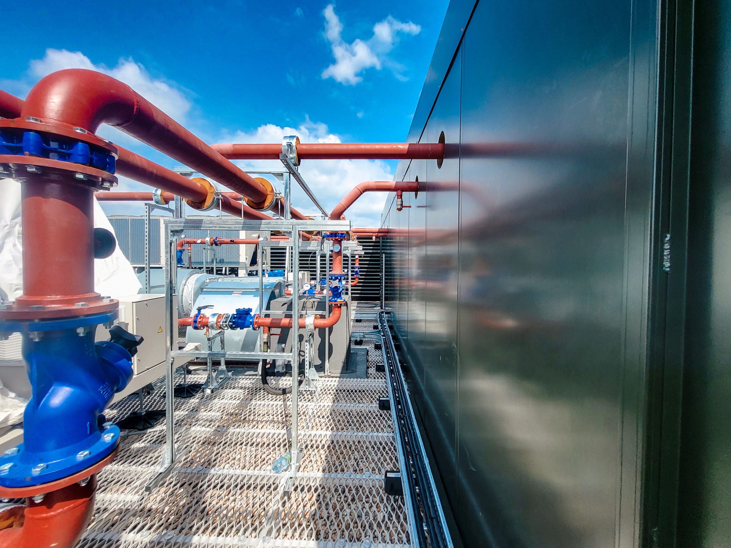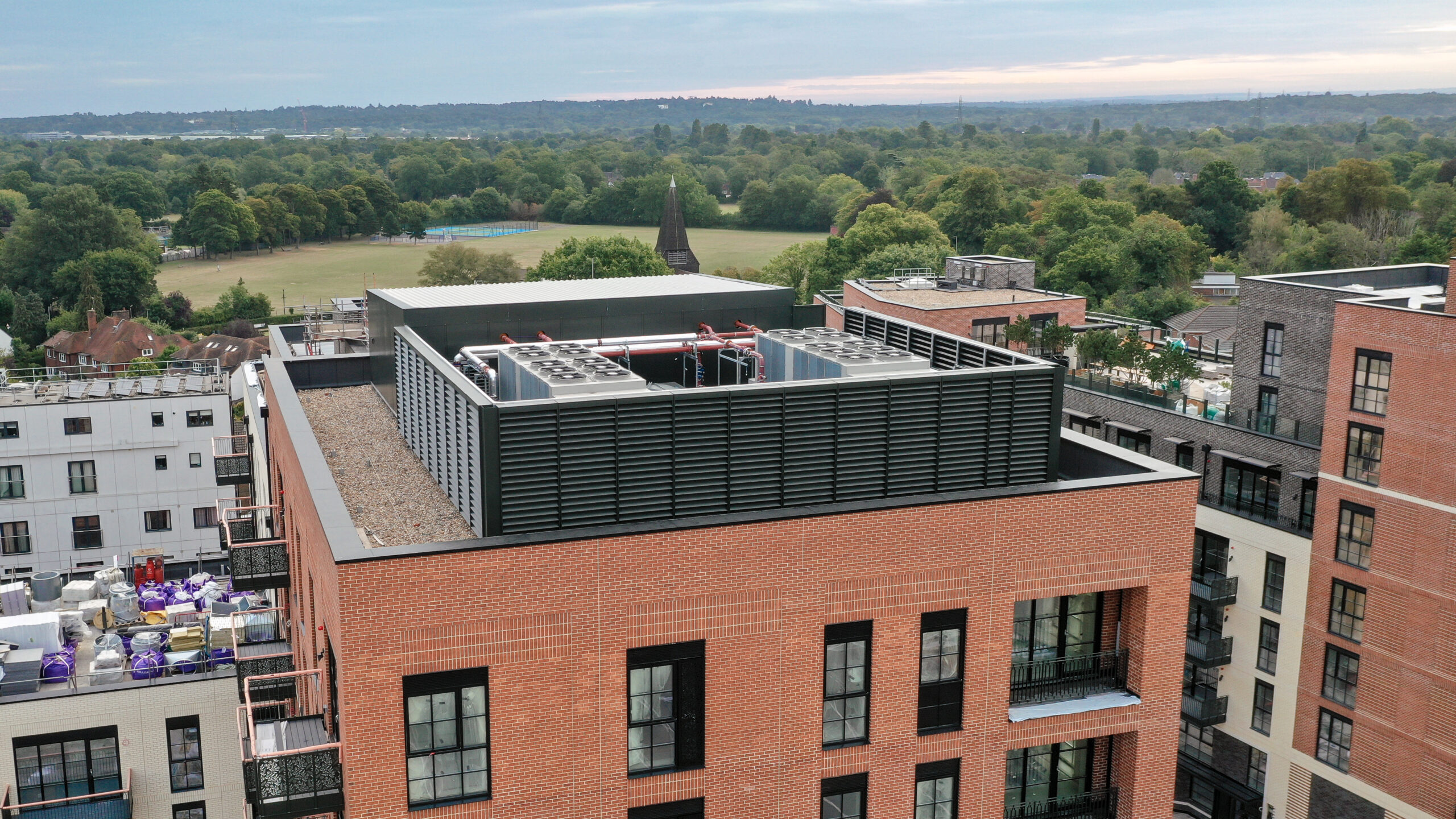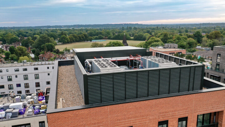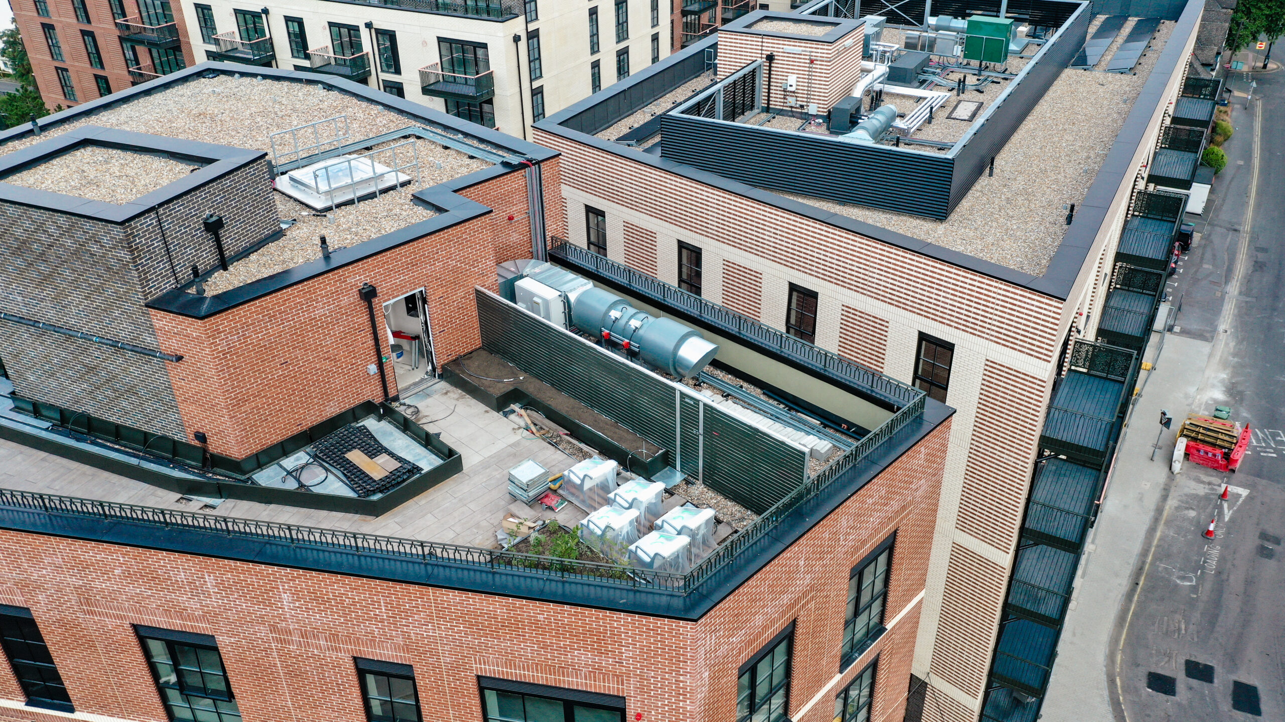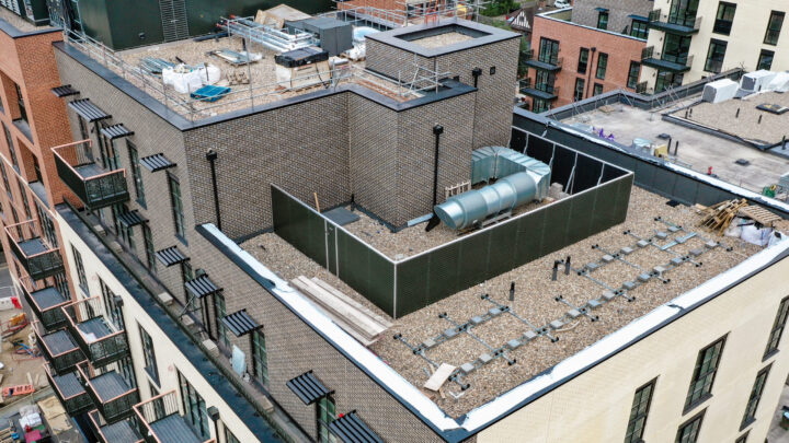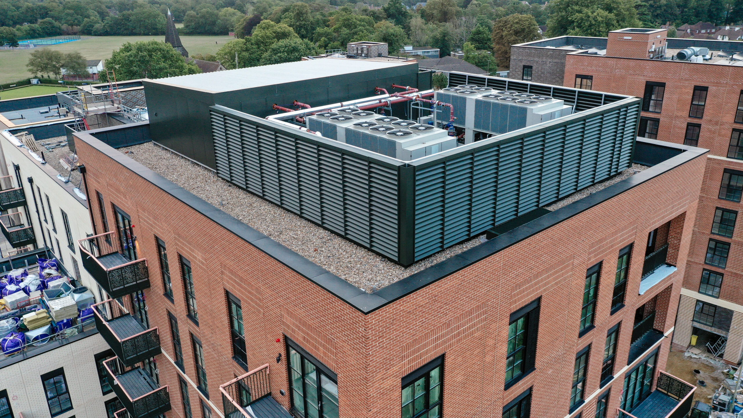 The plantroom featured our Flatscreen roof and a checker plate floor, creating a robust enclosure to shield sensitive equipment. Our Series 3 deck, constructed from lightweight yet durable aluminium, supported the installation of additional HVAC equipment while keeping overall roof loadings to a minimum. To enhance performance and appearance, the equipment was enclosed with our Peaceflow300 acoustic louvre screen system, which reduces noise levels, provides a clean visual finish, and maintains the necessary airflow for efficient operation.