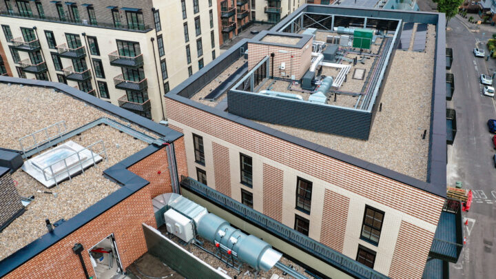 The installation was remarkably quick and efficient thanks to the pre-engineered, modular design of the system. No crane was needed other than to lift the kit-form packs onto the roof, making the process far safer and less labour-intensive than traditional steel systems, which typically require craning in each individual component. There is almost zero waste onsite, this approach not only reduced time on site but also minimised the risk of roof leaks by avoiding any penetrations into the finished roof surface.